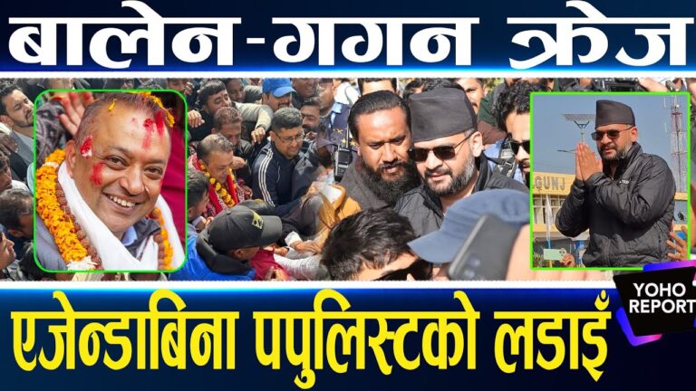 तर, उनलाई नै किन जिताउने ? यसको स्पष्ट उत्तर भने उनीसँग पनि छैन । पत्रकारको प्रश्नबाट भाग्दै हिँडेका उनका समर्थकहरू अहिले ‘पुरानाले खाँदा नयाँले किन नपाउने ?’ भन्ने भाष्य निर्माणमा सक्रिय छन् । अर्कातर्फ ‘अबकी बार बालेन सरकार’ भन्दै उनको अनुहार देखाएर च्याखे थाप्ने दाउमा रास्वपाका उम्मेदवार रहँदा पार्टी र सभापति रवि लामिछाने नै छायामा परेका छन् । अहिले पार्टीभन्दा पनि बालेनकै लागि भोट हाल्नुपर्ने गरी प्रचार गरिएको छ । यही अवस्था नेपाली कांग्रेसभित्र पनि सल्किएको छ । गगन थापा आफूलाई प्रधानमन्त्रीका रूपमा ब्रान्डिङ गरेर मैदानमा उत्रिँदा कांग्रेसभन्दा उनको अनुहार हेरेर भोट हाल्नुपर्ने भाष्य निर्माण भइरहेको छ । नयाँ शक्तिहरूझैँ पपुलिज्ममा रमाइरहेका उनी न एजेन्डाको कुरा गरिरहेका छन्, न त देश बनाउने स्पष्ट भिजन नै पेस गरेका छन् ।