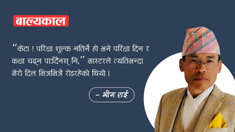 तर अर्को बर्ष मेरो पाता फर्क्यो । किनभने मास्टरले अबदेखि उसो शुल्क लाग्छ भनेर स्कूल शुल्क माग्न थाल्नु भयो ।