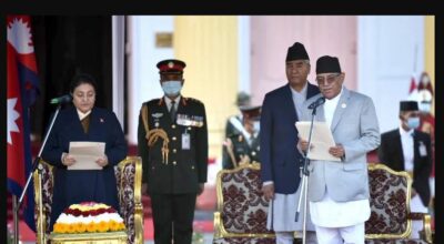 काठमाडौँ — प्रधानमन्त्री पुष्पकमल दाहाल प्रचण्डले पद तथा गोपनीयताको शपथ लिएका छन् । उनले शीतल