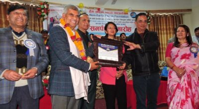 काठमाडौँ — योहो टेलिभिजनका समाचार प्रमुख वरिष्ठ पत्रकार जीवराम भण्डारीलाई टंकप्रसाद-रमादेवी पाठक पत्रकारिता पुरस्कार प्रदानगरिएको