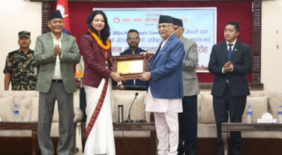 काठमाडौँ – सरकारले पेरिस पारालिम्पिक्समा कांस्य पदक विजेता पलेशा गोवर्द्धनलाई सरकारले ६५ लाख नगदसहित सम्मान