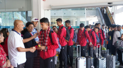 काभा यु-२० पुरुष भलिबलको उपविजेता नेपाली टोलीलाई एयरपोर्टमा टीका र जमरा लगाएर स्वागत