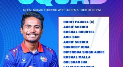 वेस्ट इन्डिज ए सँग खेल्ने नेपाली टोली घोषणा