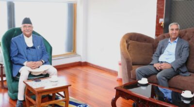 प्रधानमन्त्री ओली र कांग्रेस सभापति देउवाबीच बालुवाटारमा भेटवार्ता