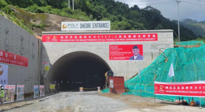 काठमाडौं–तराई द्रुतमार्गअन्तर्गत धेद्रे सुरुङ मार्गको ब्रेक थ्रु
