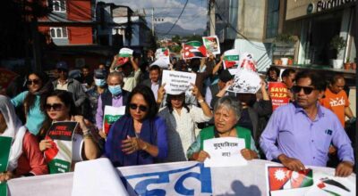 हमास लडाकुमाथि गरिरहेको सैन्य कारबाहीको विरोधमा काठमाडौँमा प्रदर्शन