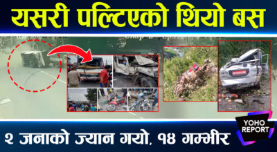 काठमाडौंमा डरलाग्दो दुर्घटना भयो, एकै ठाउँमा चार दुर्घटना, एउटै गाडीले हान्यो १२ जना, चालकको मनोमानी