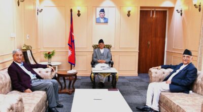 प्रधानमन्त्री ओलीसहित देउवा र प्रचण्डबिच भेटवार्ता हुँदै
