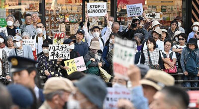 गाजा द्वन्द्वलाई लिएर जापानमा जुलुस