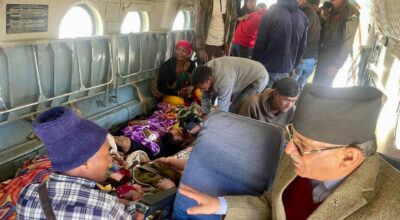 प्रधानमन्त्री चढेको हेलिकप्टरमा घाइतेको उद्धार