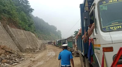 वर्षापछि सडक हिलो हुँदा दाउन्नेमा १२ घण्टादेखि जाम