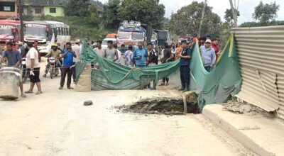धादिङको थाक्रेमा पुलमा भ्वाङ परेपछि पृथ्वी राजमार्ग बन्द