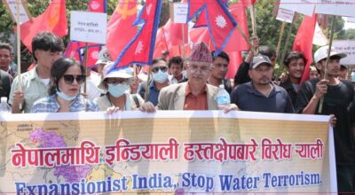 नेपालमाथिको हस्तक्षेप बन्द गर्न माग गर्दै भारतीय दुतावास अगाडि प्रदर्शन