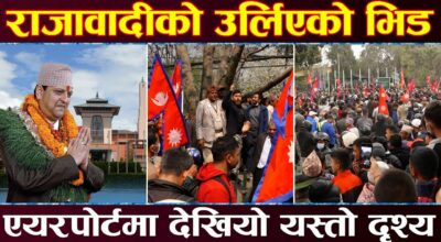 पूर्वराजाको स्वागतमा थामिनसक्नु भिड, राष्ट्रिय झण्डा बोकेर ओलीविरुद्ध नारा, सुरक्षा तैनाथी थपियो (भिडियो)