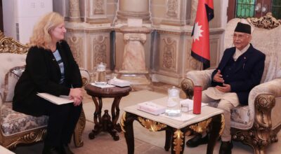 प्रधानमन्त्री ओलीसँग नेपालका लागि फ्रान्सका राजदूतको शिष्टाचार भेट