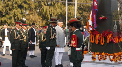 राष्ट्रपतिद्वारा पृथ्वीनारायण शाहको सालिकमा माल्यार्पण