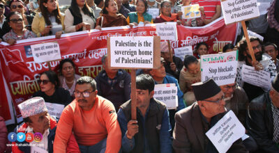 गाजामा इजरायली आक्रमण रोक्न काठमाडौंमा प्रदर्शन