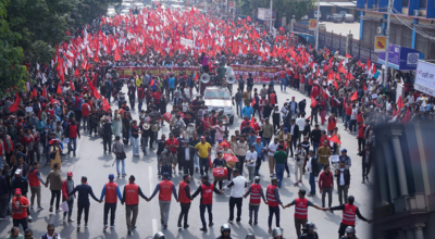 खबरदारी सभाअघि माओवादीले निकाल्यो जुलुस
