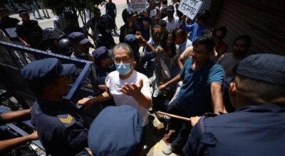 बृहत् नागरिक आन्दोलनले निषेधित क्षेत्रमा प्रदर्शन गर्न थालेपछि प्रहरी र प्रदर्शनकारीबिच धकेलाधकेल