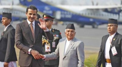 कतारका अमिर आइपुगे नेपाल , राष्ट्रपति पौडेलले गरे स्वागत