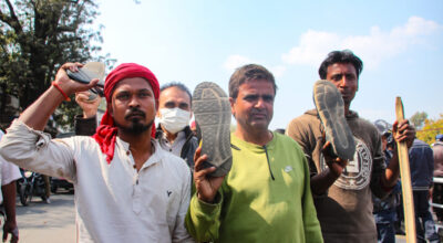 जुत्ता चप्पल फुकालेर मिटर ब्याज पीडित प्रदर्शनमा