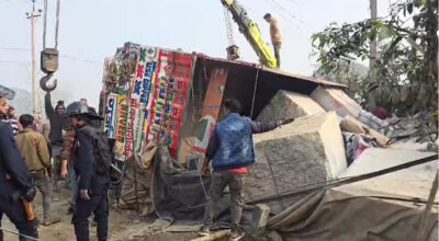 मोरङमा ट्रक पल्टिँदा ३ बालबालिका च्यापिए, उद्धार प्रयास जारी