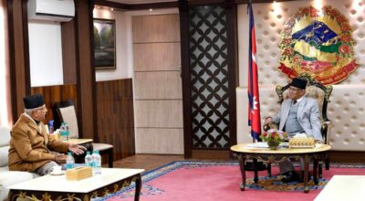 प्रधानमन्त्री प्रचण्ड र एमाले अध्यक्ष ओलीबीच भेटवार्ता