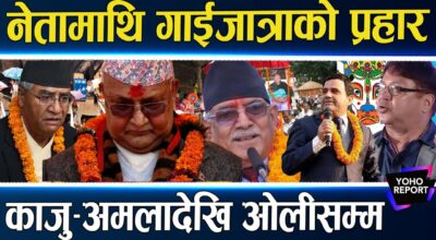 नेताको गाईजात्रामा कलाकारको प्रहार, भन्नसम्म भने, जति गरे पनि छोएन व्यंग्यले, हाँसेरै टारे (भिडियोसहित)