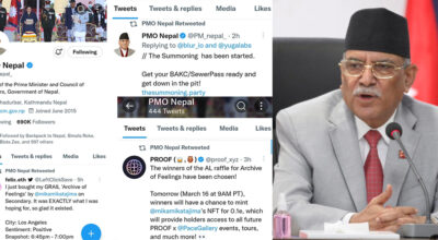 प्रधानमन्त्री कार्यालयको आधिकारिक ट्विटर ह्याकरको नियन्त्रणमा रहेको आशंका