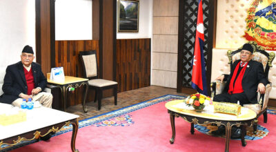 प्रधानमन्त्री प्रचण्डलाई भेट्न बालुवाटार पुगे एमाले अध्यक्ष ओली