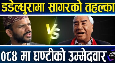 देउवाको डडेल्धुरामा घरघर पस्दै सागर ढकाल, अहिल्यै चुनावी झल्को, दायाँबाँया रास्वपाका नेता (भिडियोसहित)