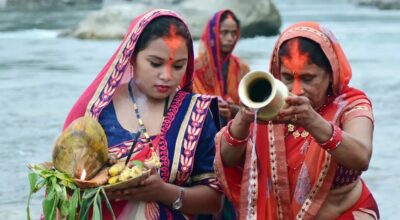 छठ पर्वको मुख्य दिन : अस्ताउँदो सूर्यलाई अर्घ दिएर मनाइँदै