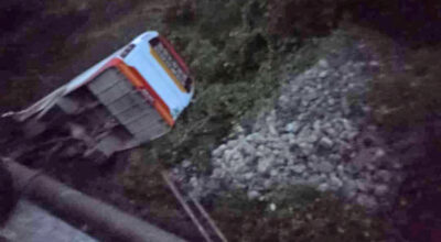 पोखराबाट सुर्खेत जाँदै गरेको बस दाङमा दुर्घटना, १४ जना घाइते