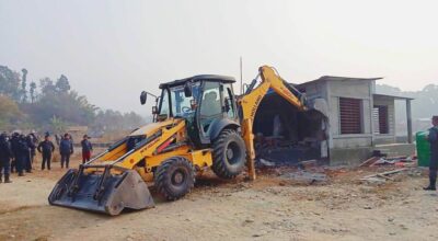 हर्क साम्पाङले धरानमा चलाए डोजर, स्थानीयले गरे ढुंगामुढा