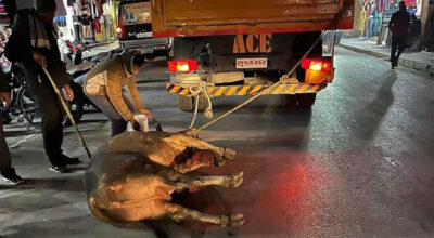 सिद्धार्थनगरमा साँढेलाई ट्रकमा बाँधेर घिसारेपछि विरोध