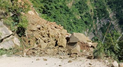 ठूलो ढुंगासहितको सुक्खा पहिरो झरेपछि बुटवल-पाल्पा सडक अवरूद्ध
