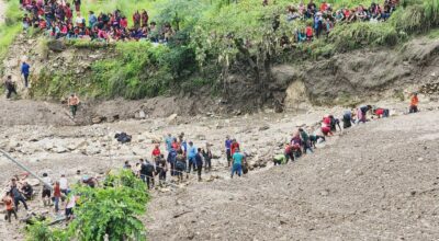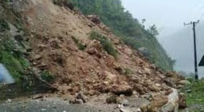 पहिरोले डुम्रे-बेंसीसहर-चामे सडक अवरुद्ध