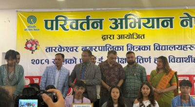 परिवर्तन अभियानद्वारा तारकेश्वरबाट एसईई उत्तीर्ण विद्यार्थीलाई सम्मान